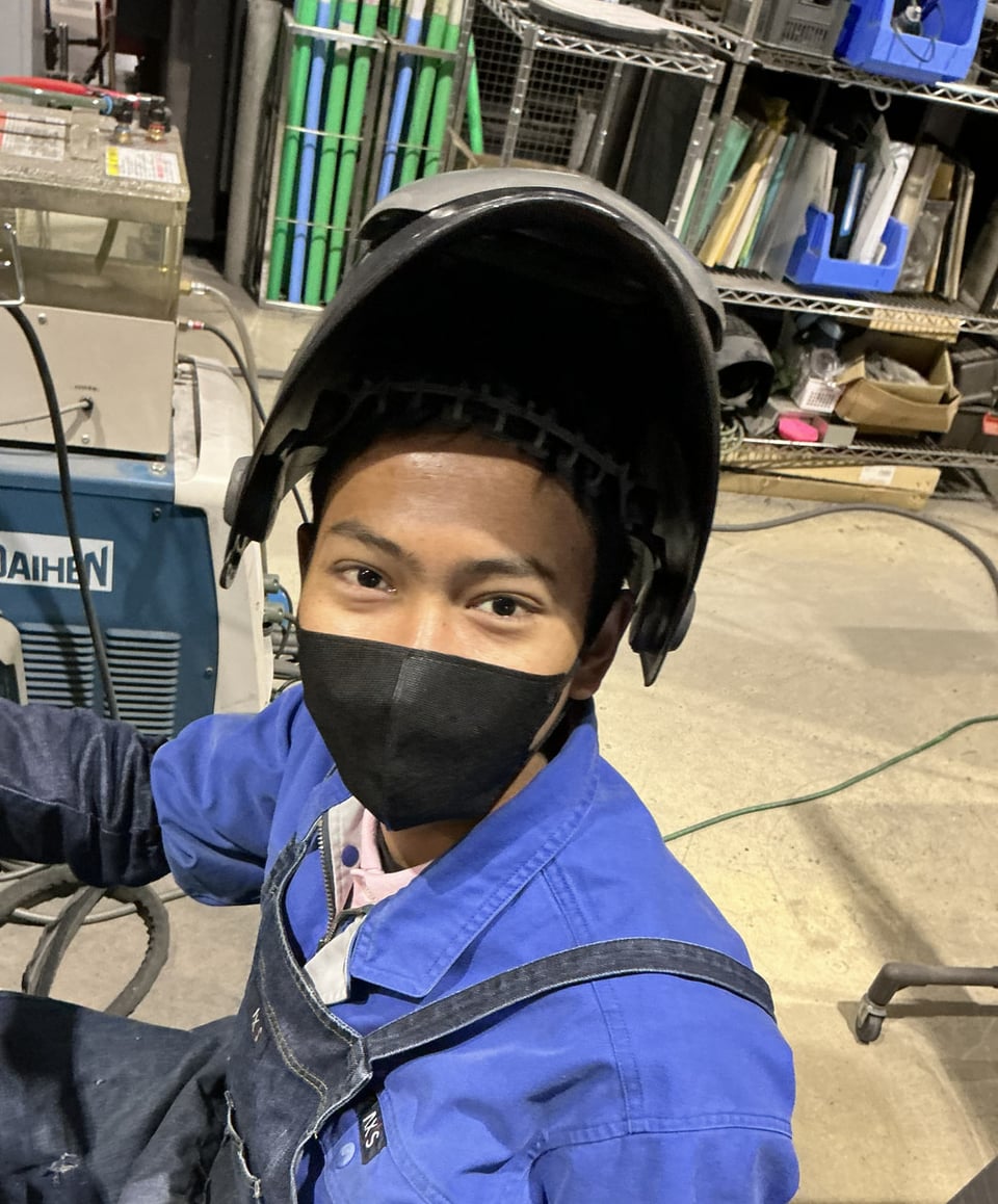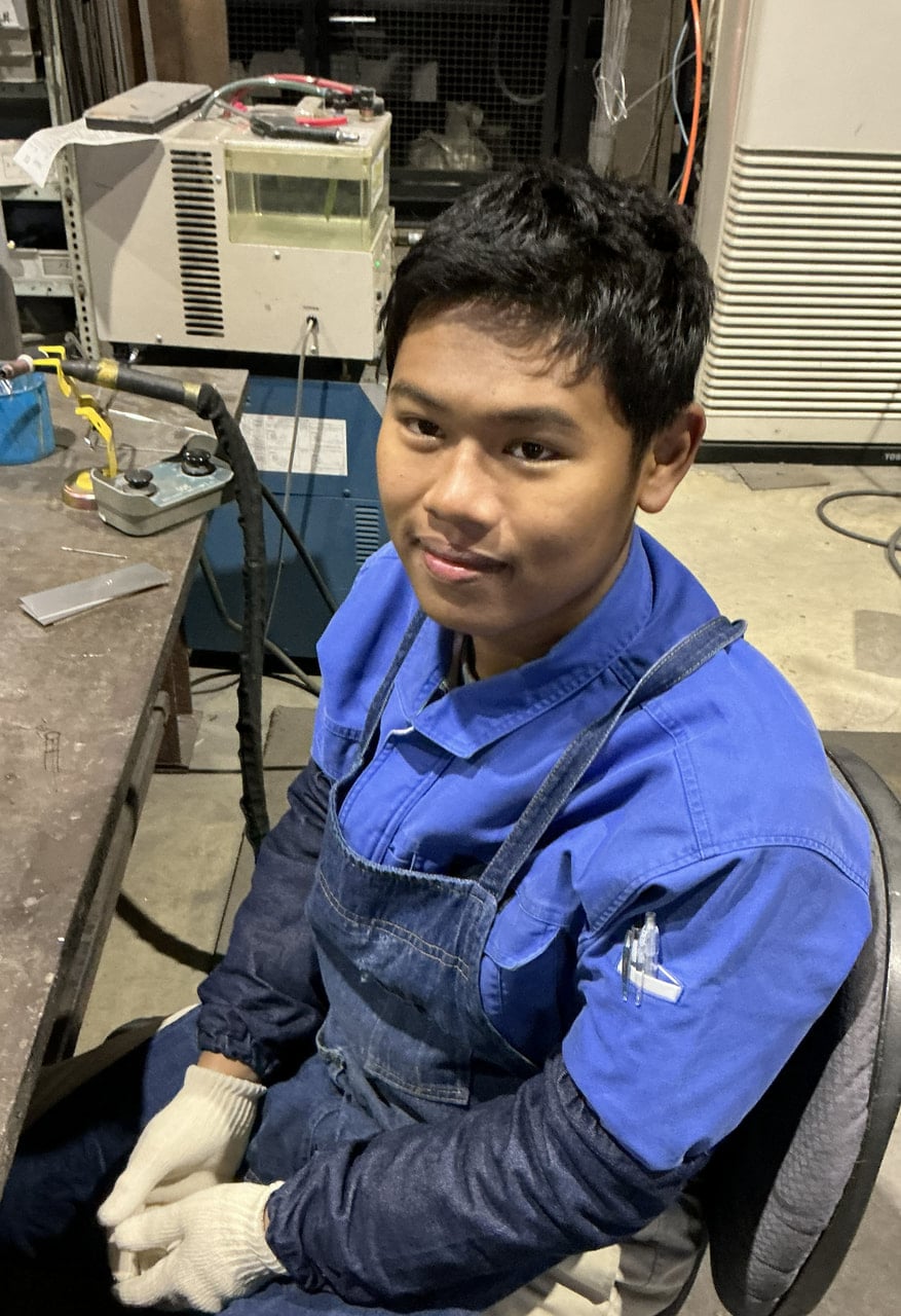 現在、様々な部署に配属して各々の適性を診断している状態です。また先に入社したラカ君も含め、自主的に早朝出社して溶接の練習をしています。